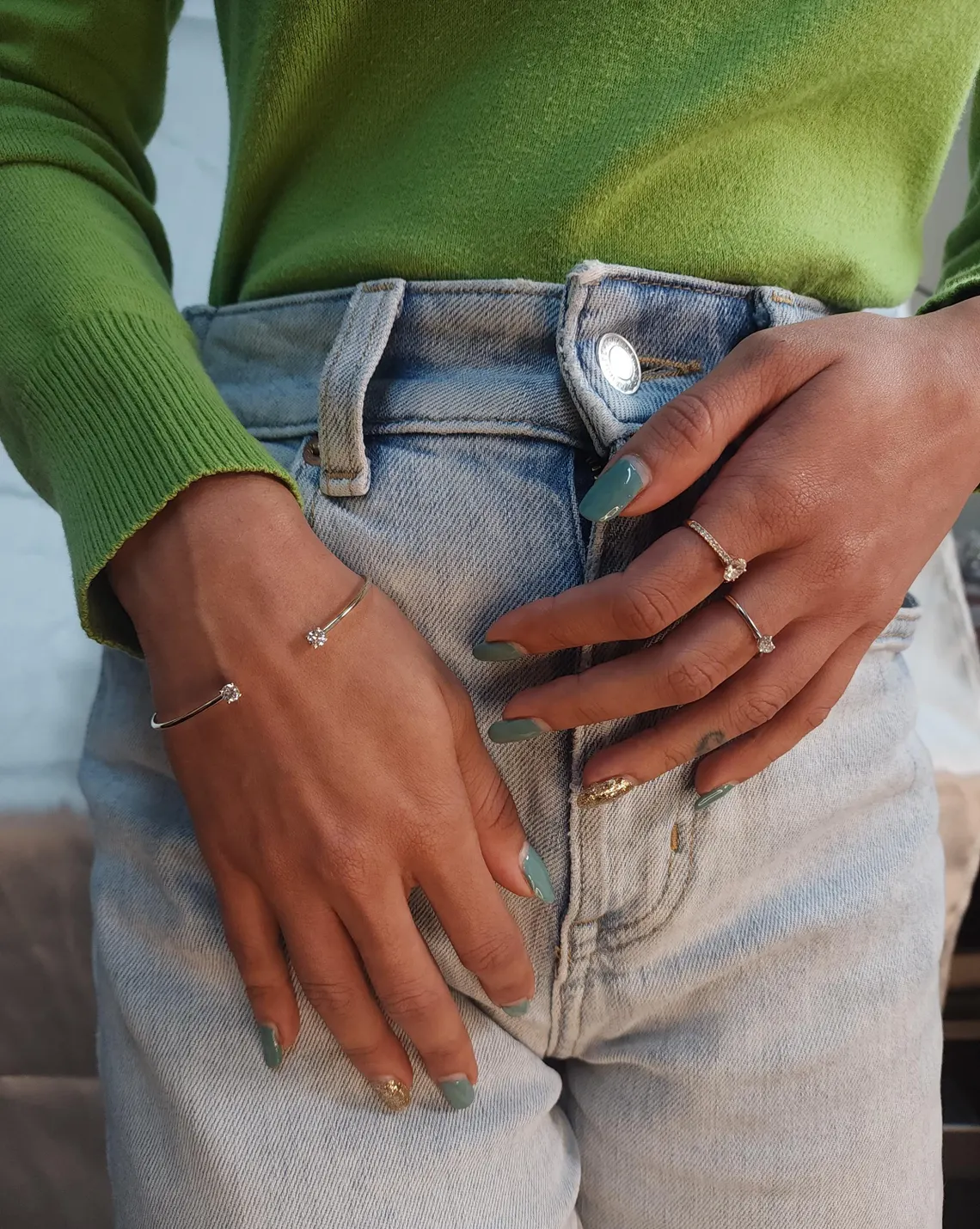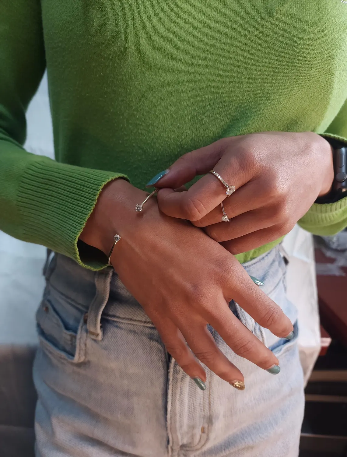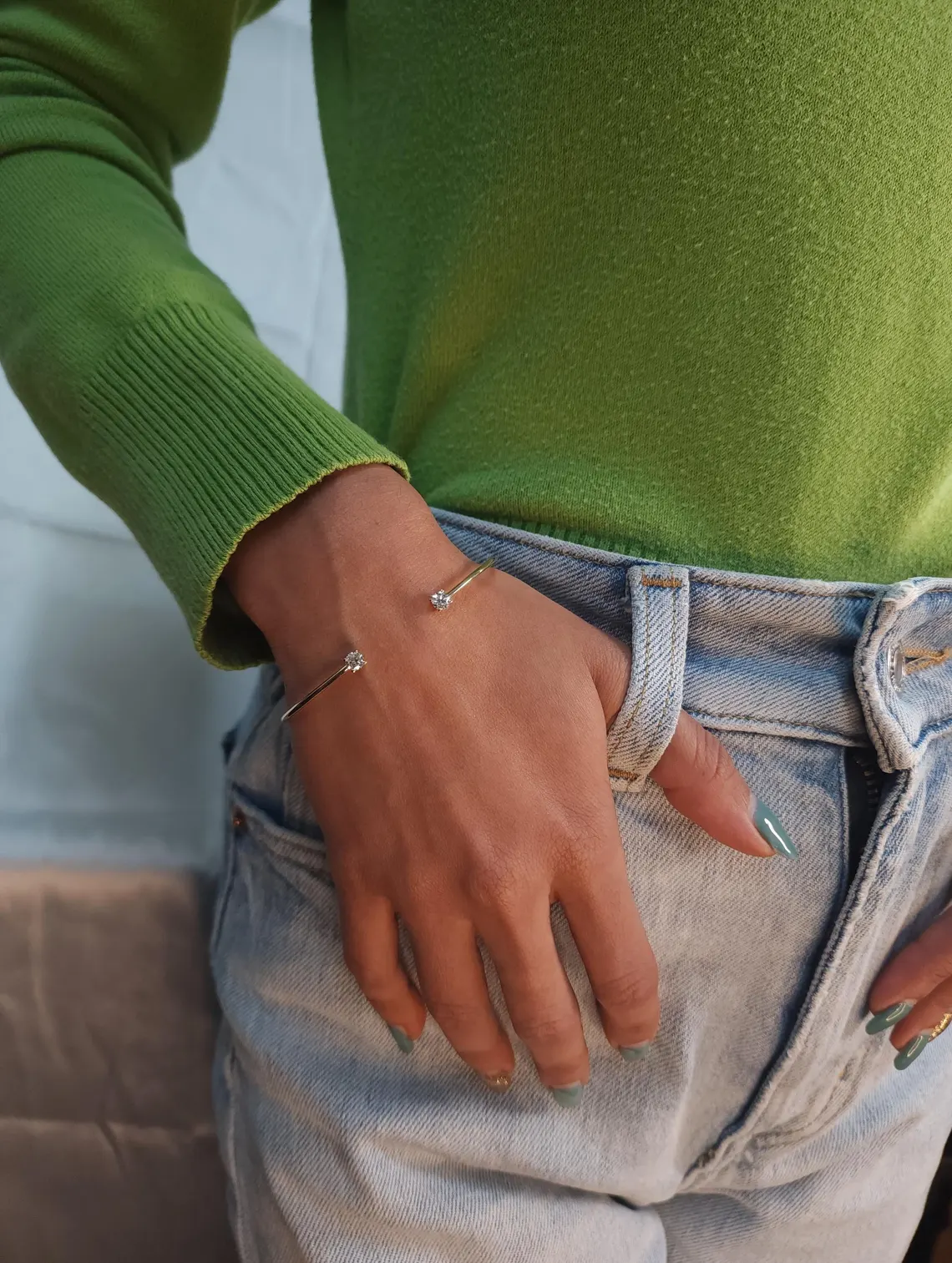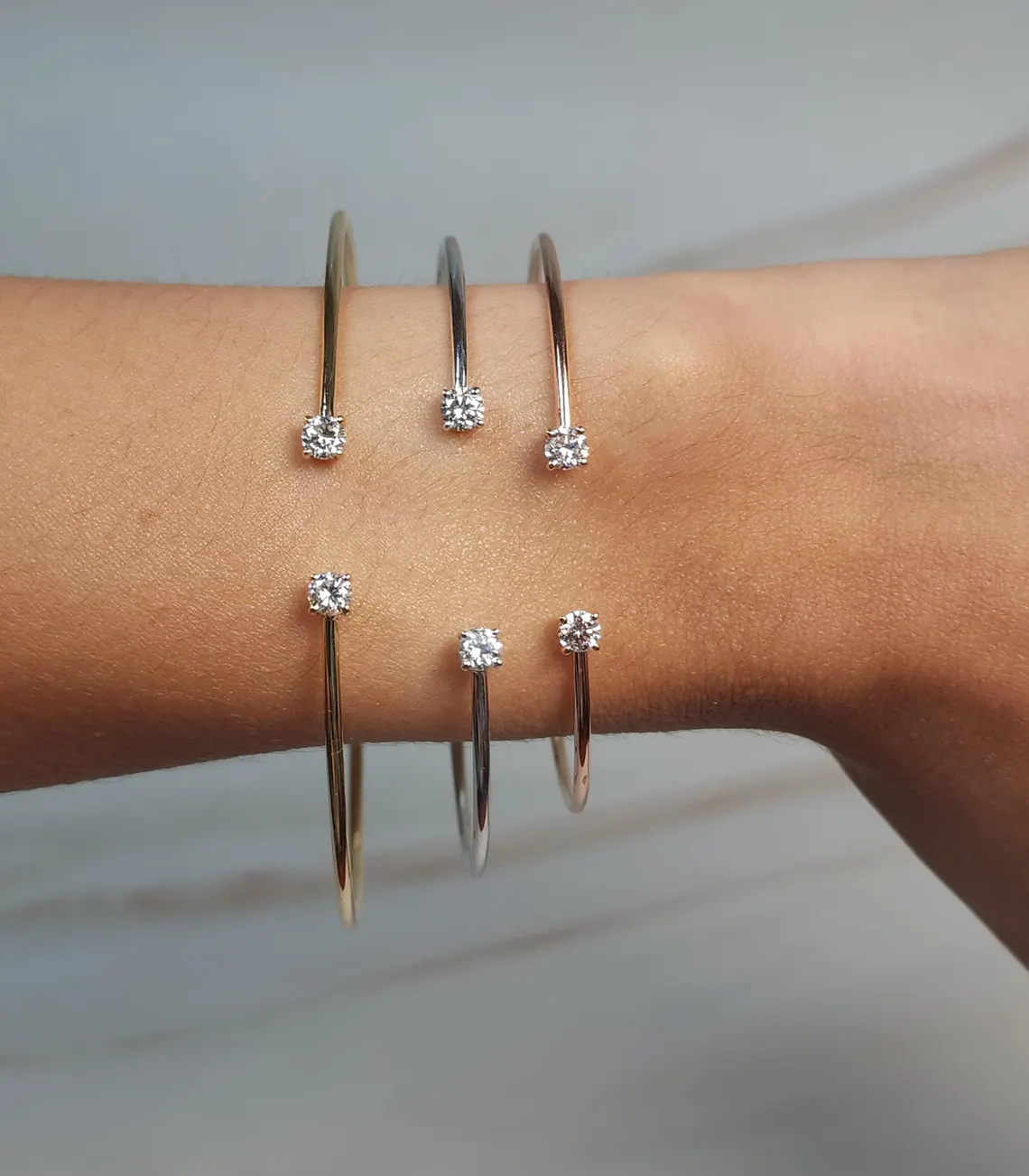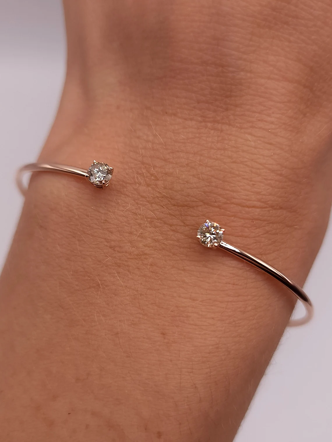 0.40 Ct Diamond Bangle, 14K Gold Lab Grown Diamond Bangle, Open Cuff Bangle