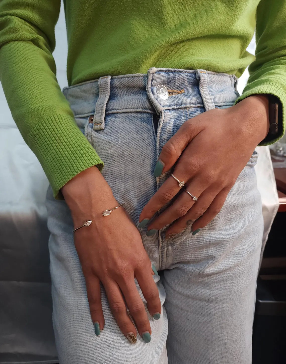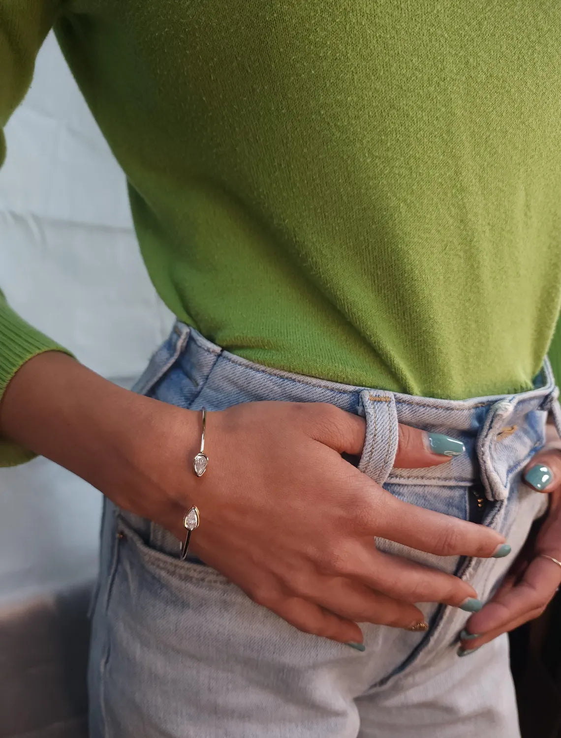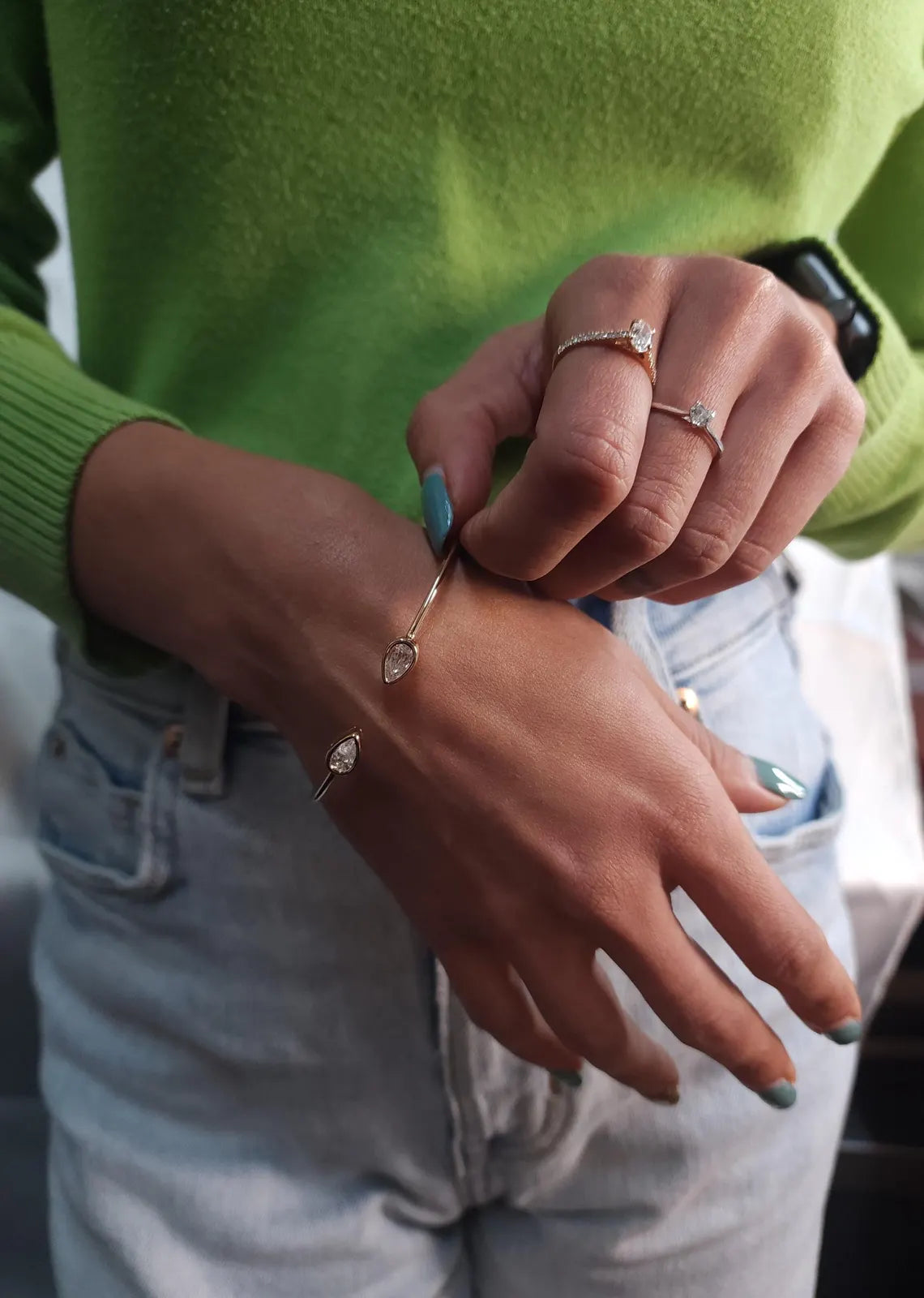 14Kt Gold White Sapphire Pear Bezel Bangle Bracelet