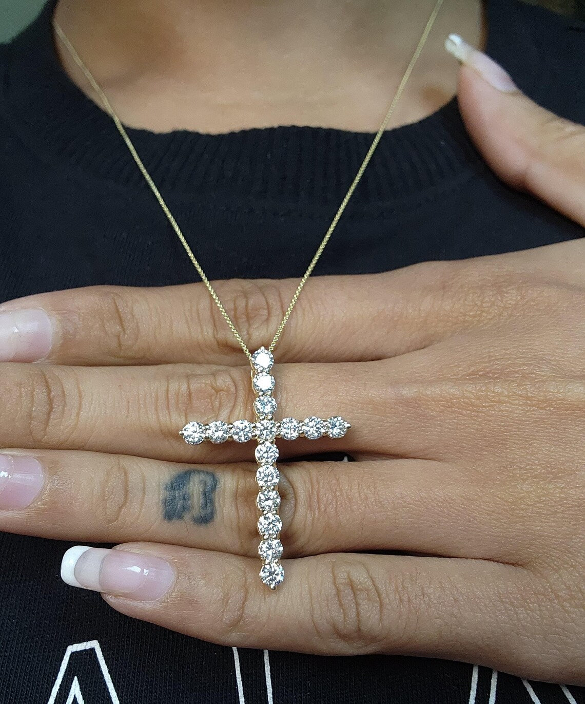2 Ct Diamond Cross Necklace, 14K Gold Lab Grown Diamond Pendant